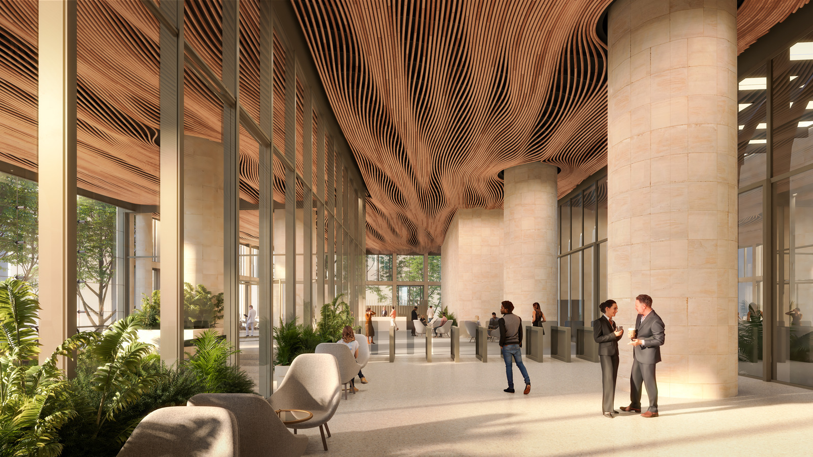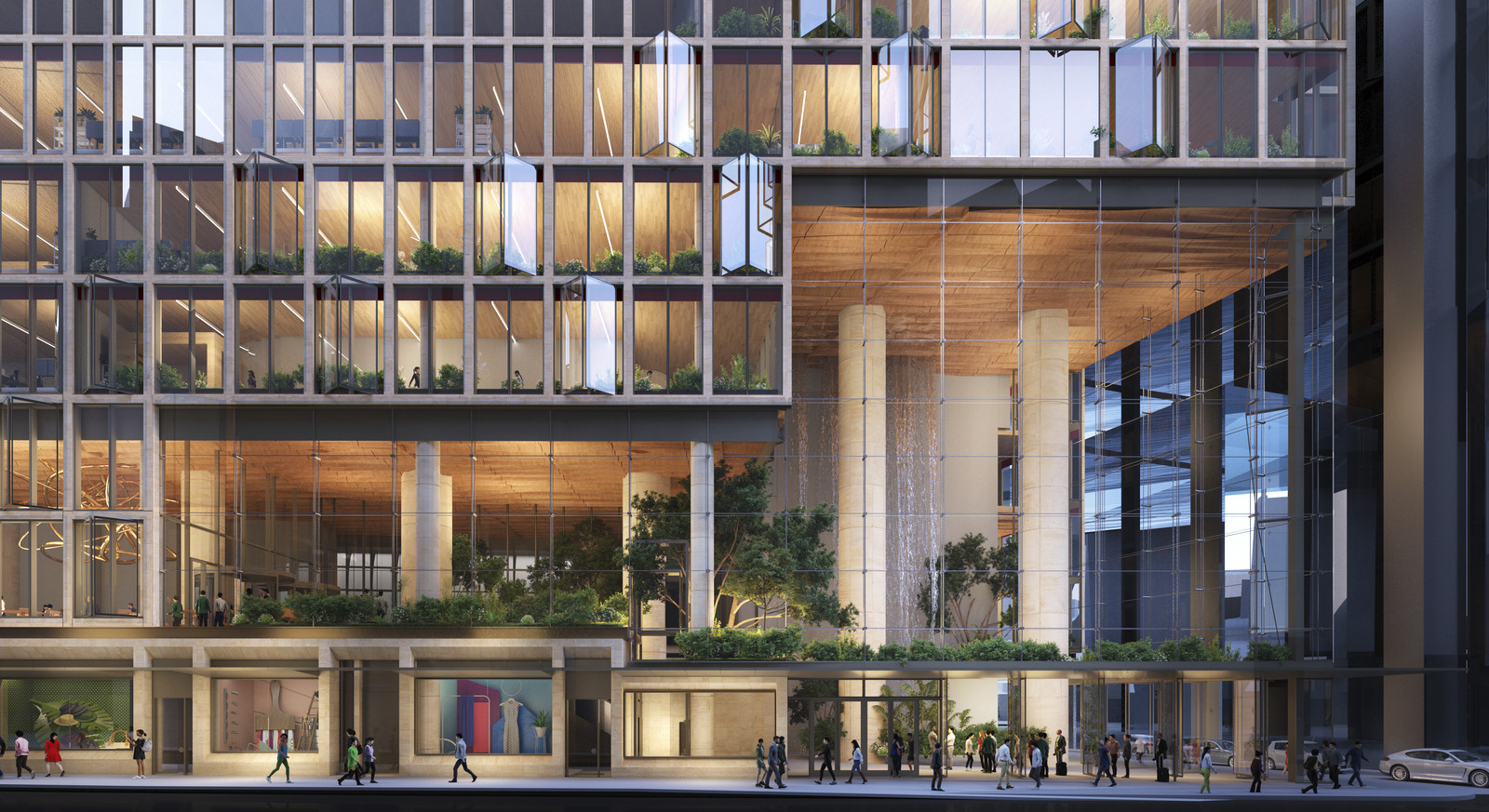 Joining other recent SHoP work in Sydney, 55 Pitt Street contributes an environmentally progressive workplace to a prime site in the central business district. Wellness is promoted from the ground up in this office tower, from the lobby space with its intensive plantings and water elements to the innovative hybrid core that contains shared and exclusive amenities for each of the optimally dimensioned, cross-ventilated floor plates.